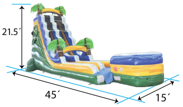 WOW them all when they feast their eyes on the awe-spiring 22' Tropical Green Marble Inflatable Water Slide. This 22' tall inflatable water slide stretches out to a whopping 45 feet in length for some and offers up big-time excitement with each ride down to the bottom. With its gender-neutral colors, this versatile inflatable can be employed for an all-boys or all-girls event, allowing for the potential to double your return on this investment! Try out this inflatable slide on a cool day without water for some fun and entertainment or simply connect a standard garden hose to the built-in misting system and dive into some refreshing relief from the summer heat! All of our inflatable wet / dry slides were designed with children's safety at heart, featuring an inflated landing zone with built-in drains that keeps the water level low enough for a good time, but safe enough for kids of all ages.